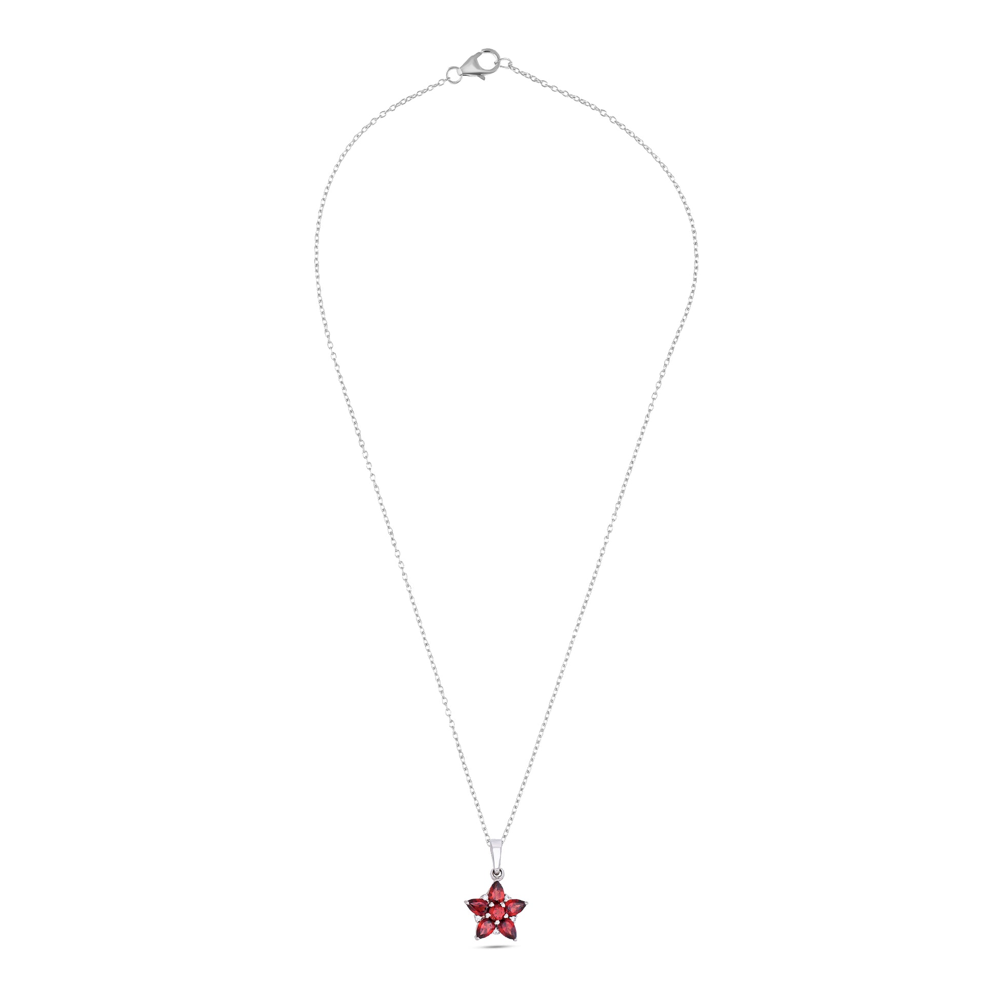 Embrace timeless elegance with this exquisite 925 Sterling Silver Floral Pendant, designed to make a statement. Shaped like a delicate five-petal flower, this pendant features vibrant red garnet gemstones and calm blue topaz arranged in a stunning blossom pattern, symbolizing love, strength, and vitality. Each petal is highlighted by sparkling cubic zirconia (CZ) stones, adding brilliance and charm to your look.