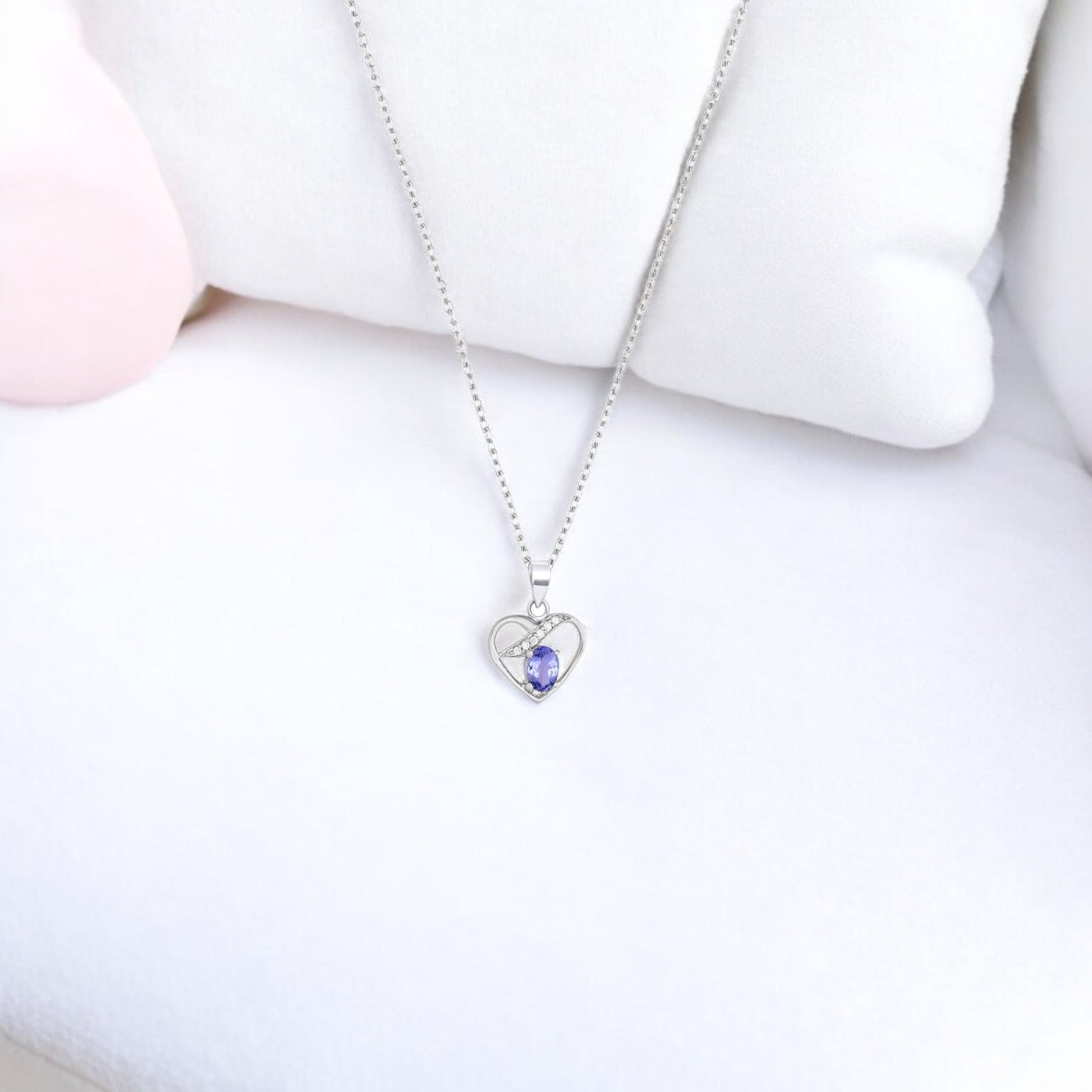 925 Sterling Silver Heart Necklace with Tanzanite & CZ – Elegant Pendant Chain for Women