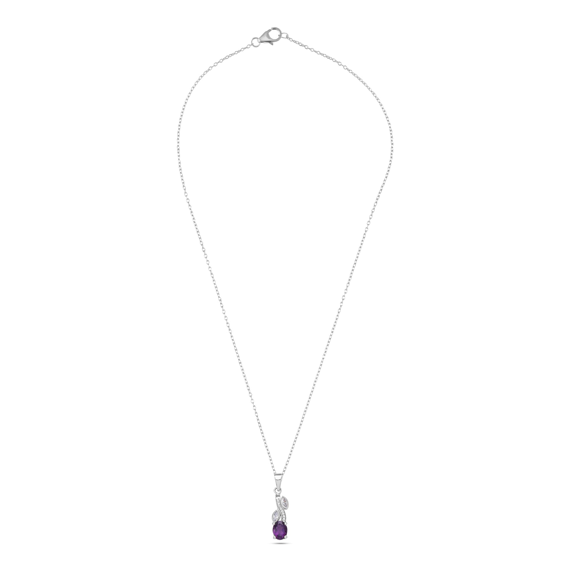 Radiating warmth and elegance, the Pendant is a delicate celebration of nature’s beauty. A vibrant oval-cut citrine and amethyst sits at the heart of a leafy vine design, surrounded by glistening white stones that resemble dew-kissed leaves. Crafted in polished silver, this pendant combines botanical inspiration with timeless charm, making it a versatile and radiant accessory for both everyday wear and special occasions.