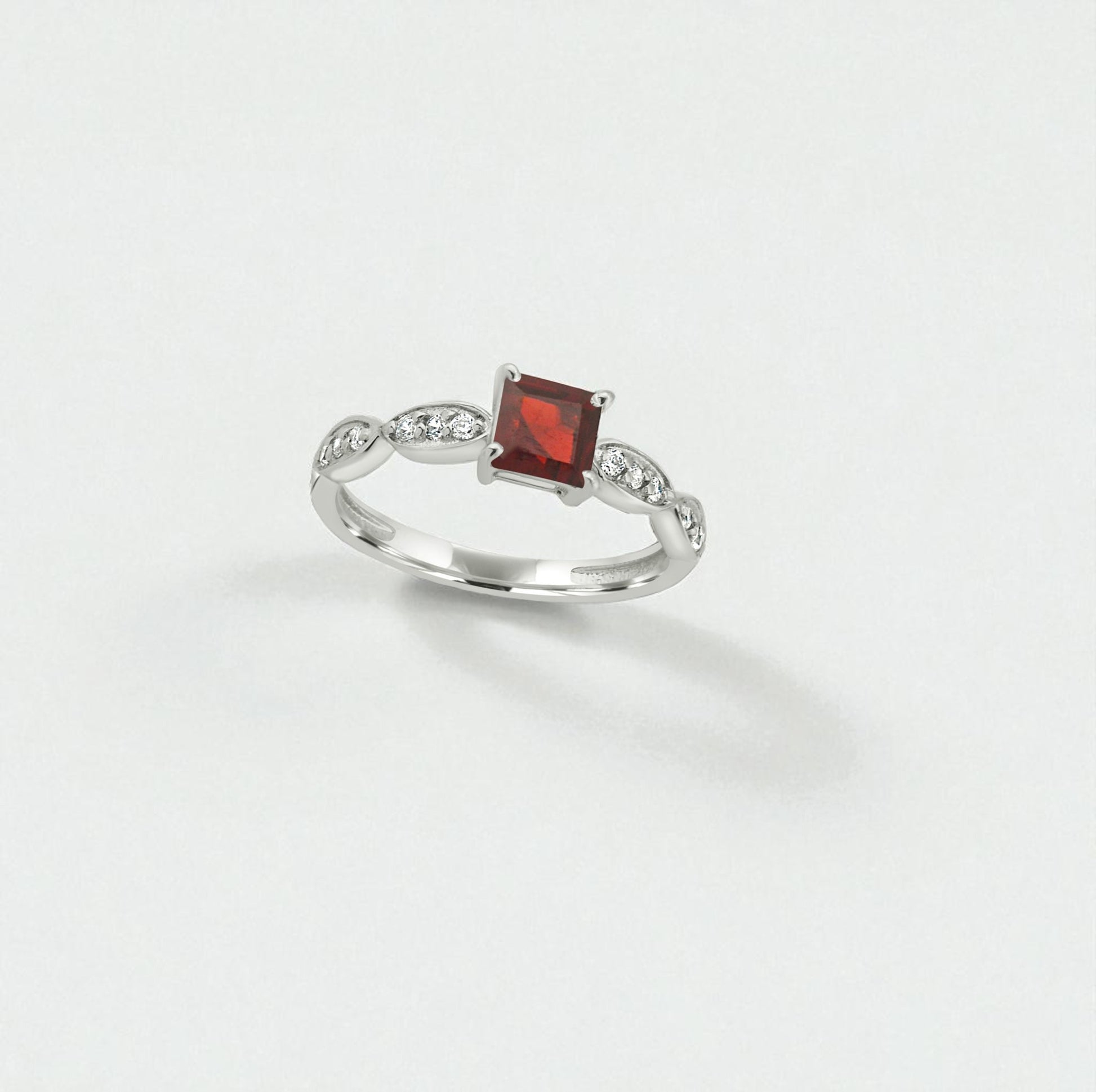 Elegant Princess Cut Garnet and Zircon Sterling Silver Ring – Modern Gemstone Jewelry