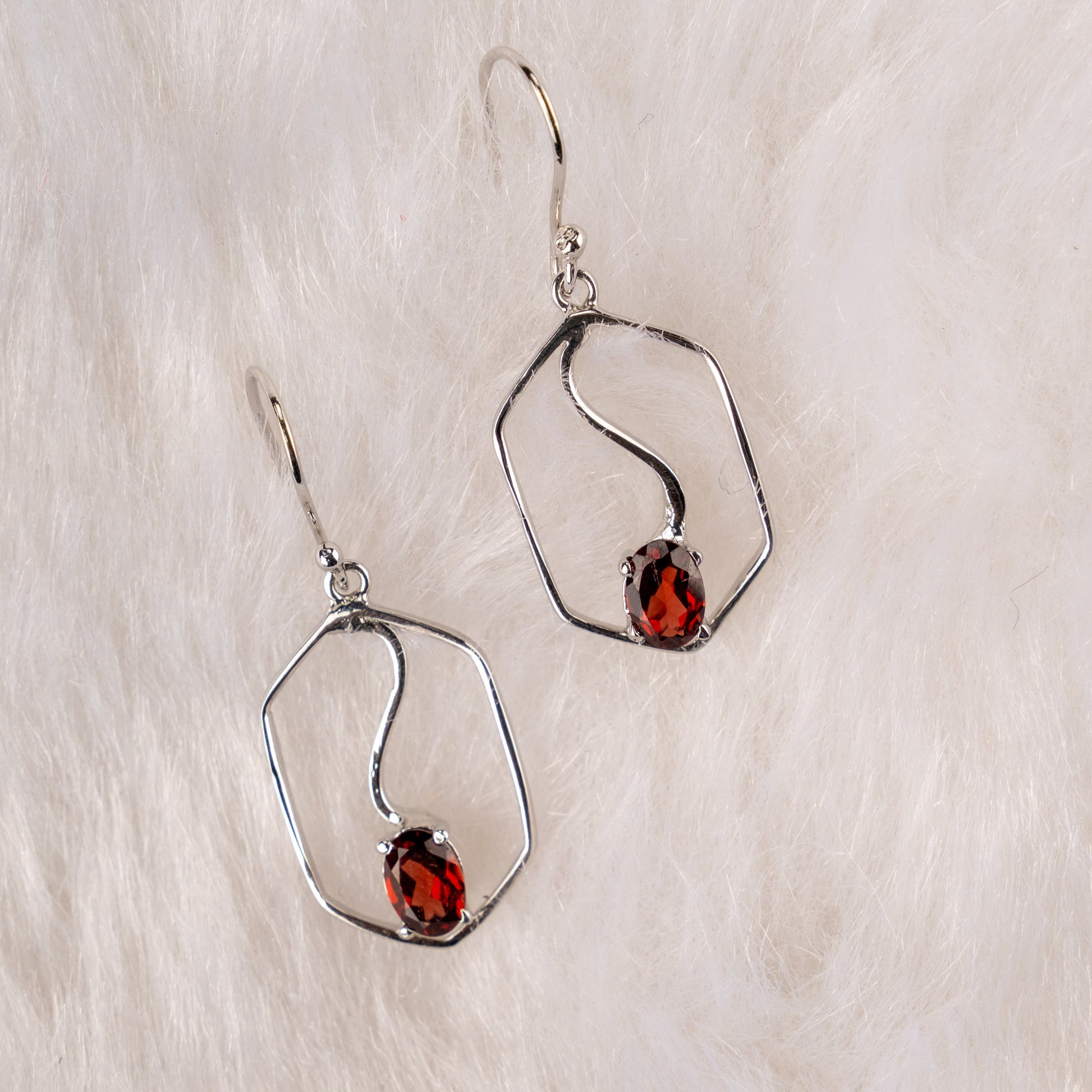Garnet Glide Silver Earrings
