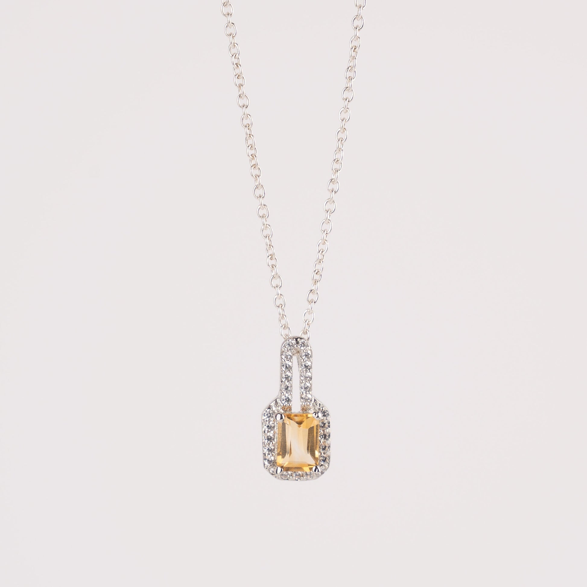 Refined and radiant, this emerald-cut pendant exudes timeless elegance. Set in gleaming sterling silver, the icy blue gemstone sits at the center of a sparkling halo of cubic zirconia, enhancing its brilliance and shape. The clean rectangular lines of the emerald cut offer a sophisticated, modern look, while the soft halo adds just the right touch of glamour. Whether worn alone or layered, this pendant makes a stunning statement for any occasion — from everyday elegance to special celebrations.