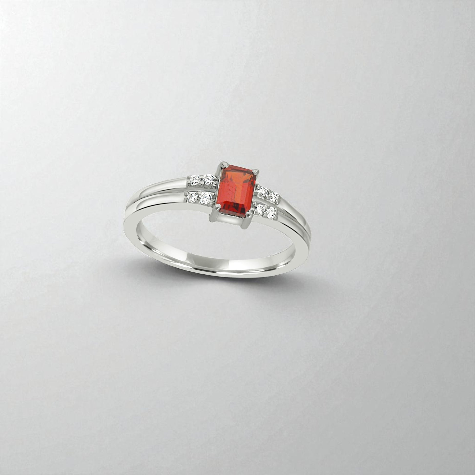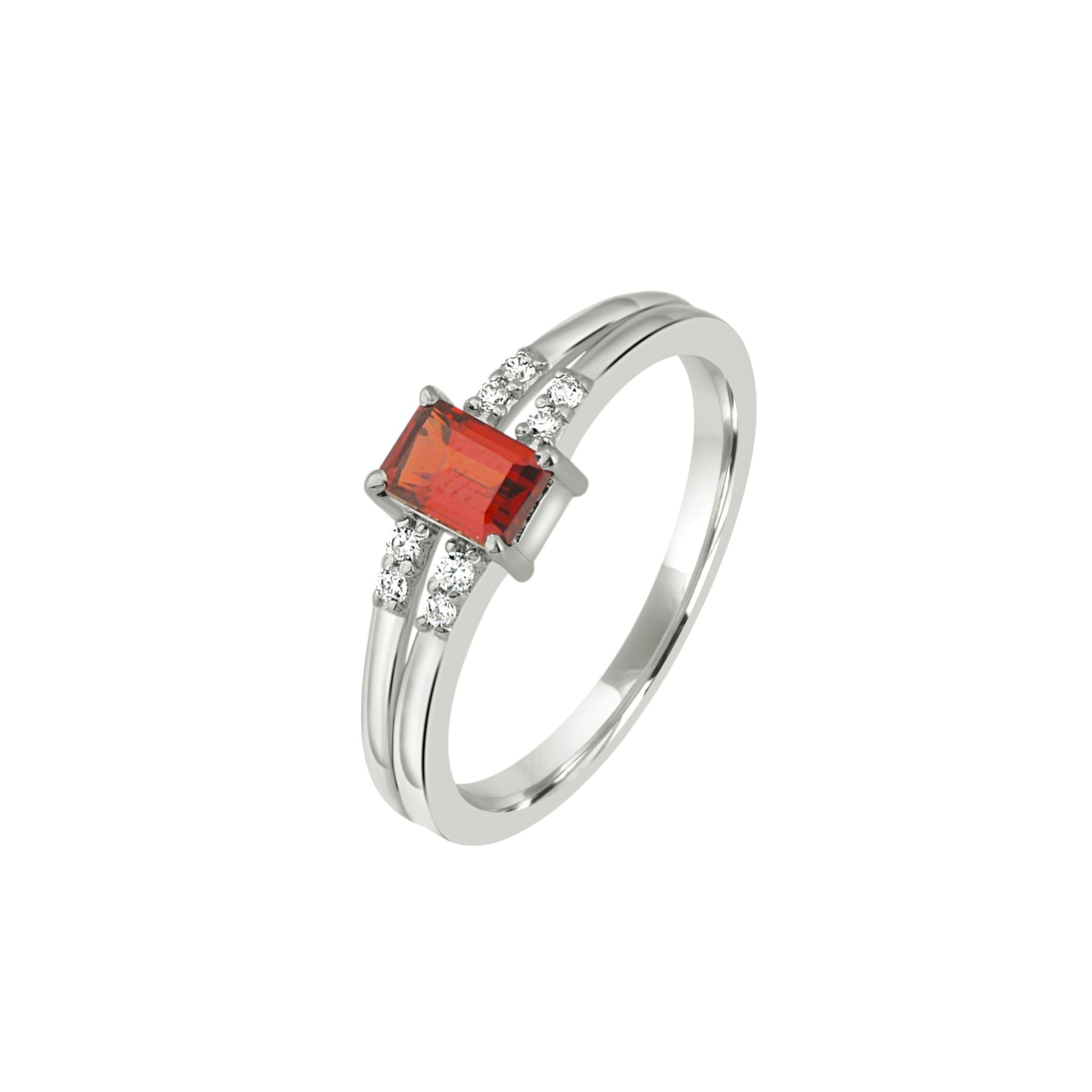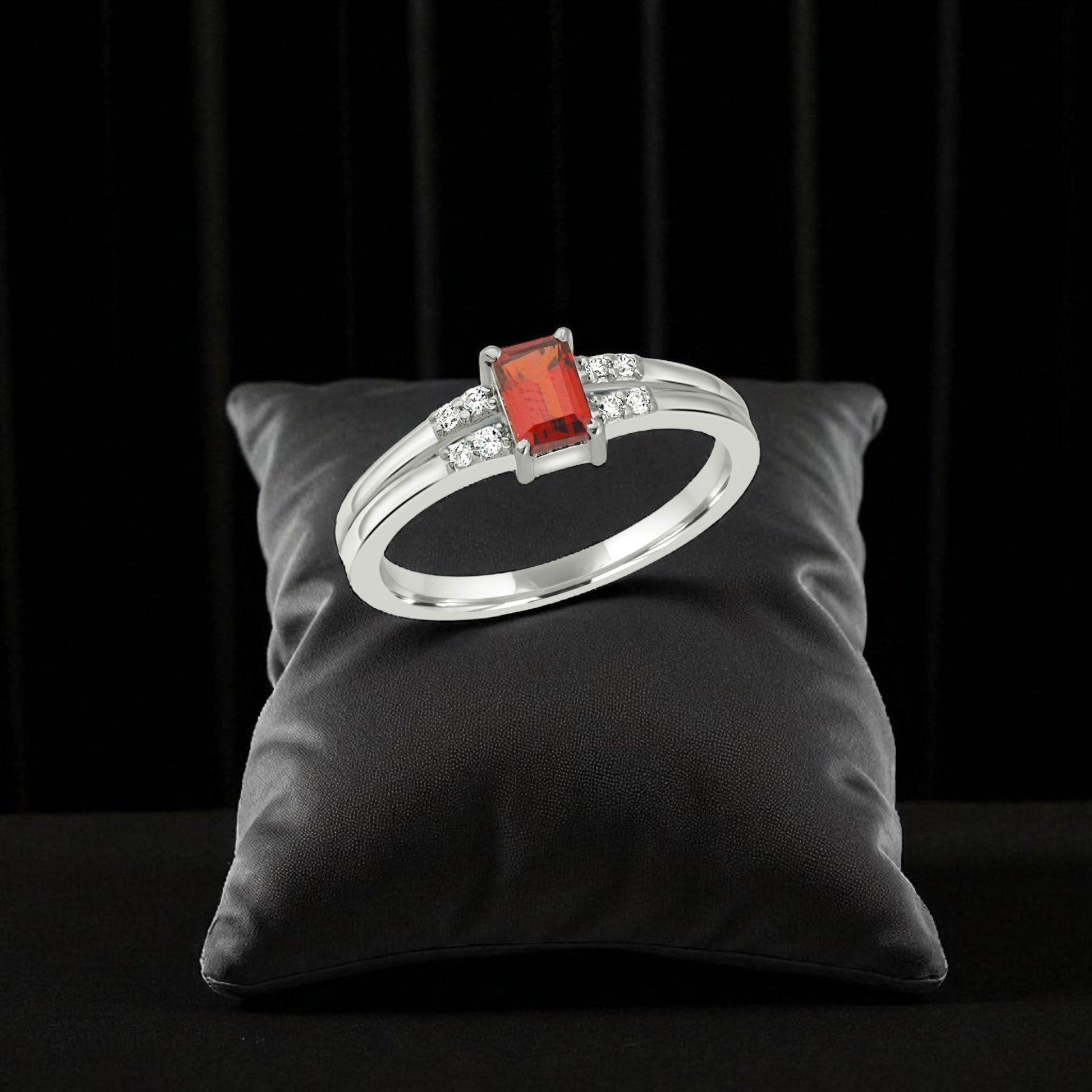 Modern Baguette Red Garnet and Zircon Ring – Sterling Silver Art Deco Gemstone Jewelry for Women