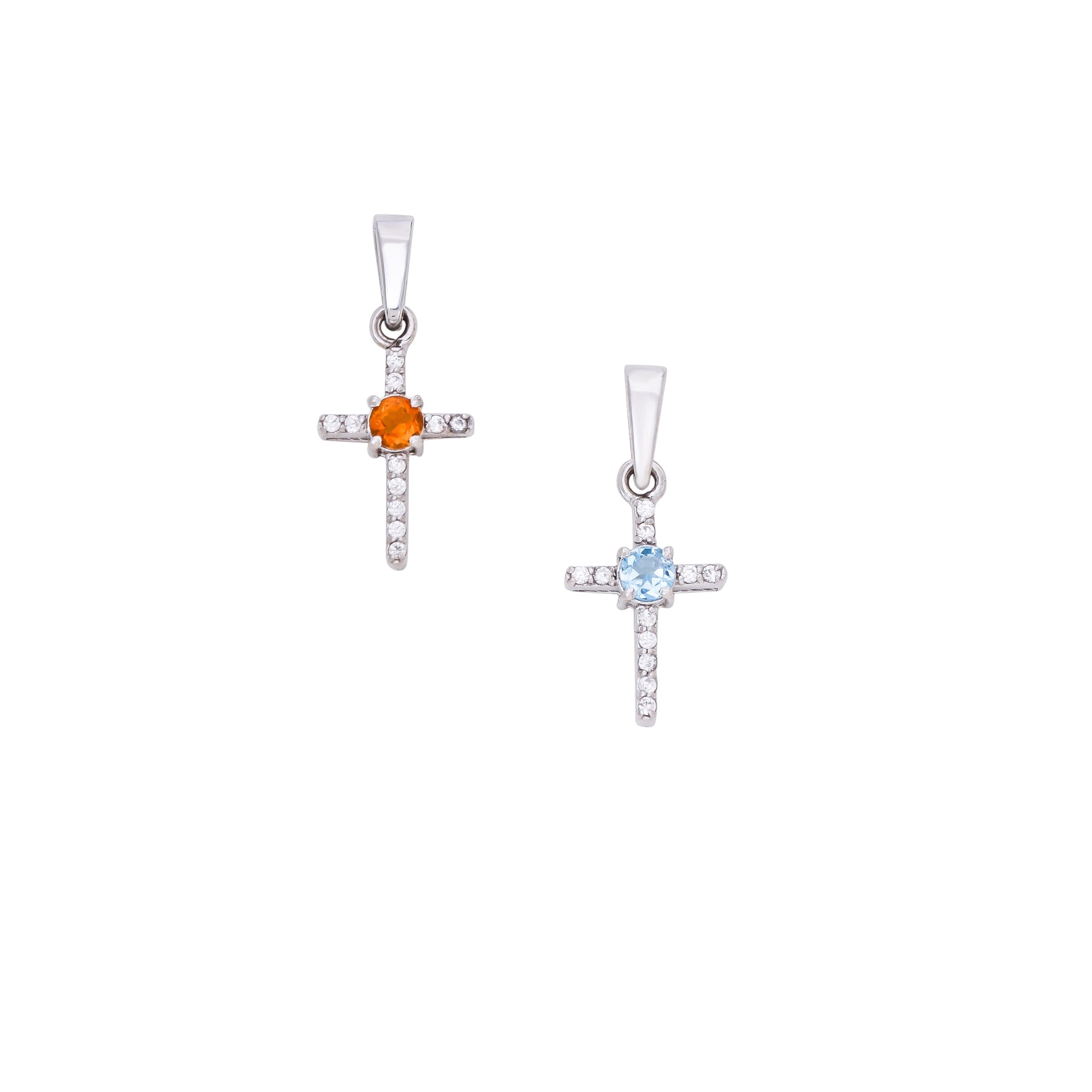 - Secondary Accent Gemstones: Sparkling white cubic zirconia lining the cross