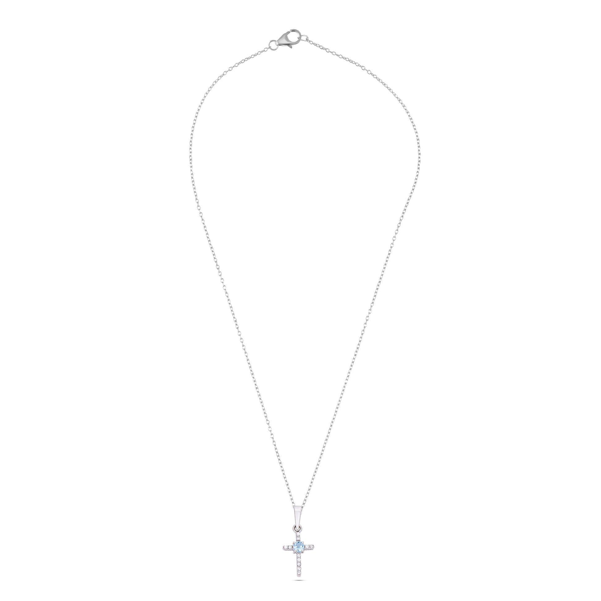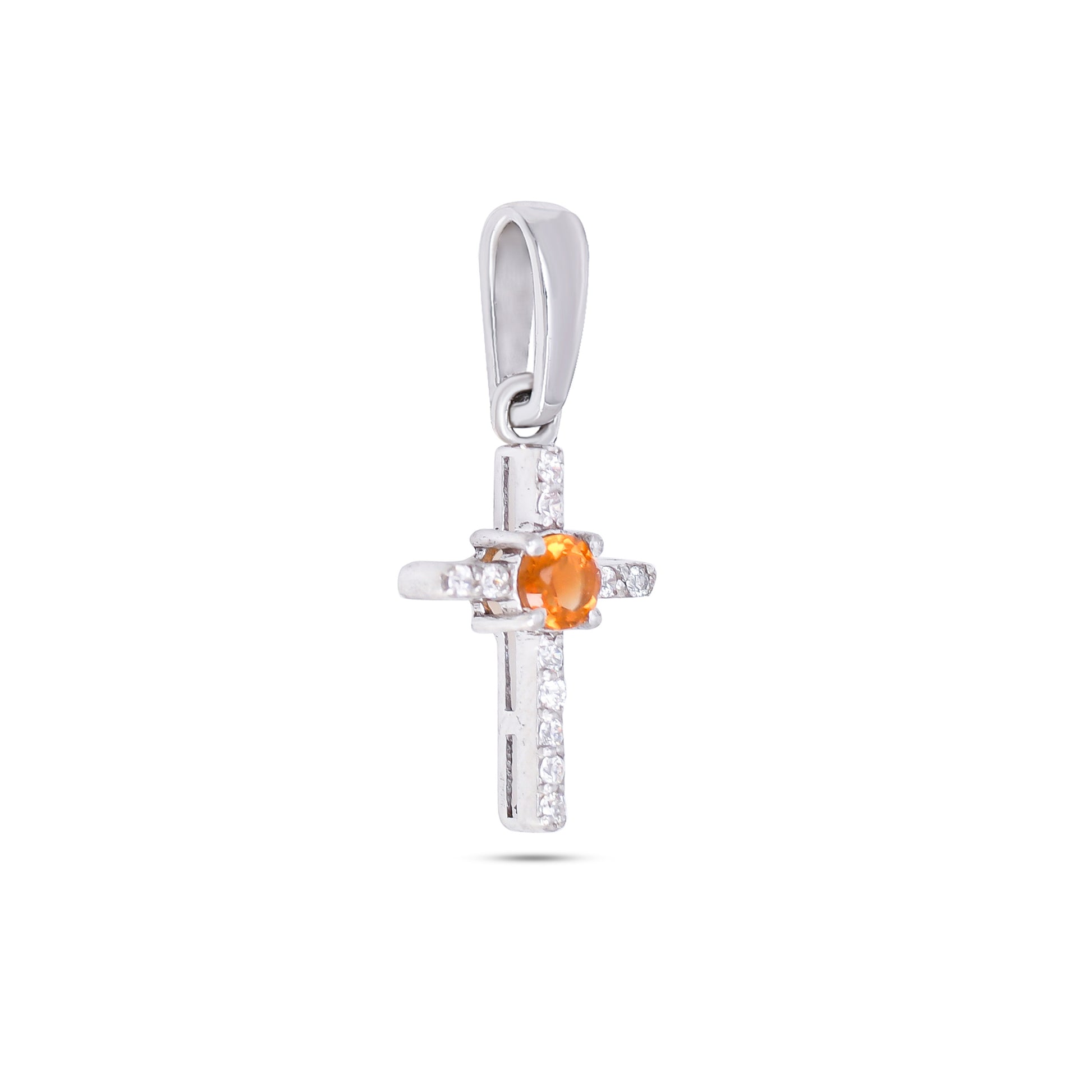 Spiritual Silver Cross Pendant with Sky Blue Topaz / Citrine Gemstones