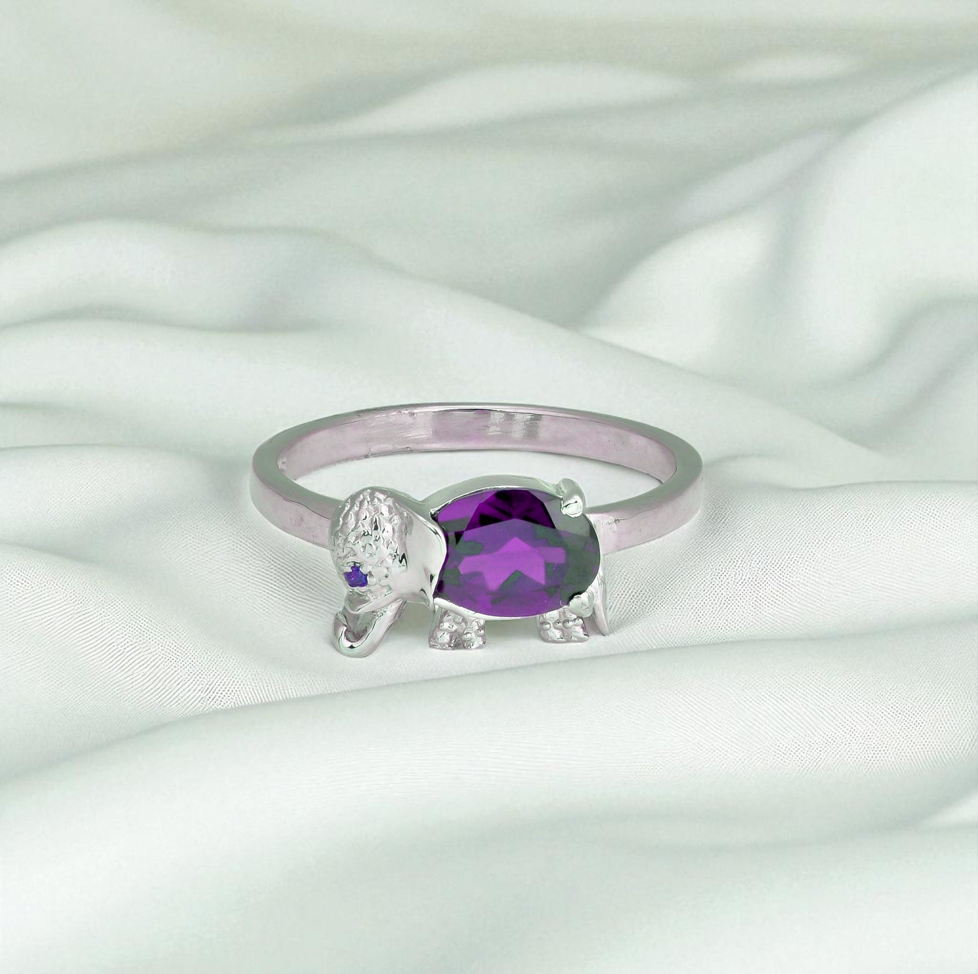 Sterling Silver Elephant Ring with Amethyst – Cute Animal Jewelry Gift for Women