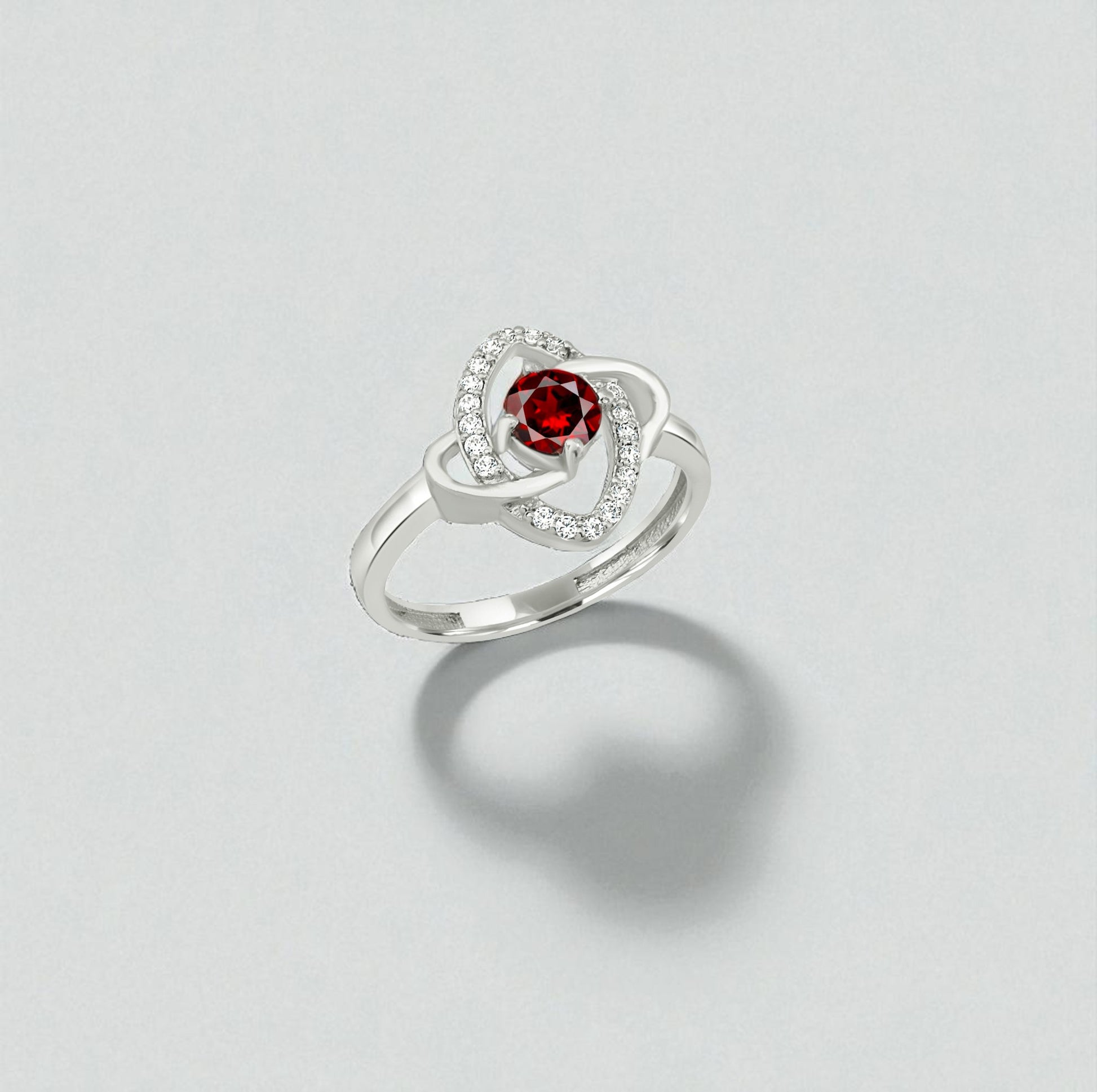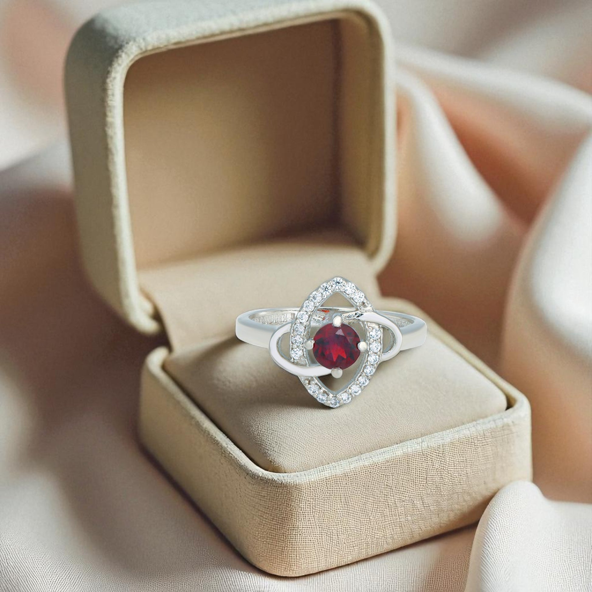 Enhance your style with this exquisite sterling silver ring featuring a vibrant red zircon at its center, gracefully surrounded by a sparkling zircon halo. The modern knot-inspired design amplifies the brilliance of each zircon, delivering a statement piece perfect for engagements, anniversaries, or meaningful gifts. Meticulously crafted for elegance and durability, this ring is an ideal addition to any fine jewelry collection—offering timeless beauty and lasting shine.