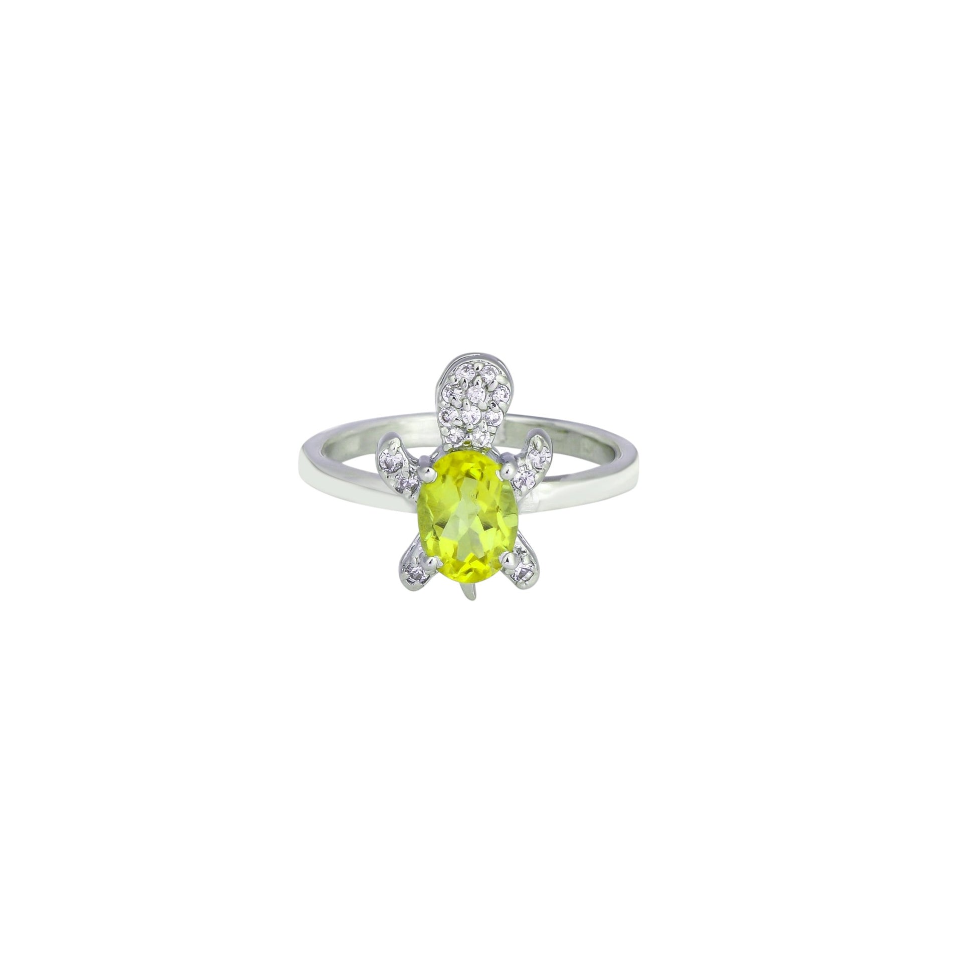 Showcase your style with this captivating sterling silver turtle ring featuring a vibrant oval-cut peridot gemstone as the turtle’s shell, accented by sparkling diamonds on its head and flippers. This whimsical yet elegant design draws inspiration from the symbolic meaning of turtles—longevity, wisdom, and good luck—making it a meaningful accessory as well as a trending piece for 2025.