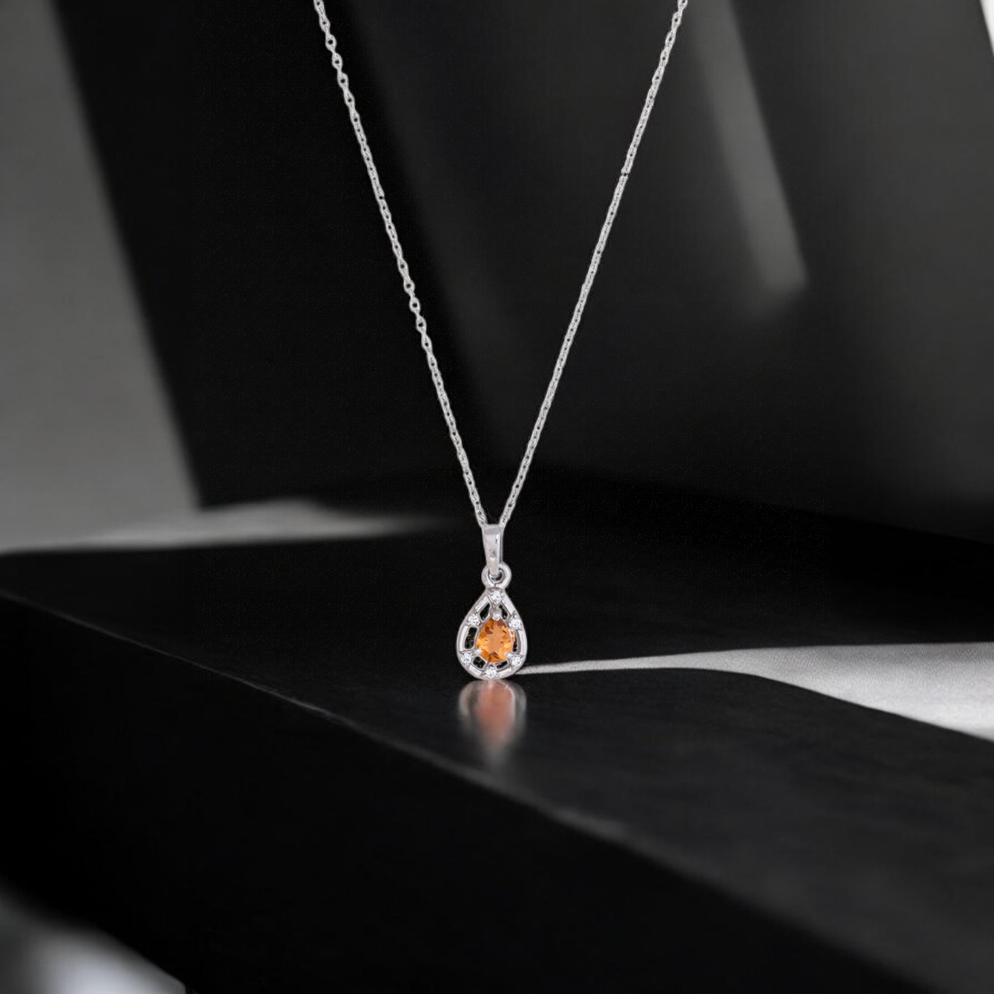 Add a touch of timeless elegance to your jewelry collection with this exquisite teardrop pendant. Crafted in sleek sterling silver, this pendant features a deep red pear-shaped garnet , calm as water blue topaz and fire Citrine at its center, surrounded by a delicate openwork frame accented with shimmering cubic zirconia stones. The graceful design strikes a perfect balance between classic charm and modern sophistication, making it ideal for both everyday wear and special occasions.