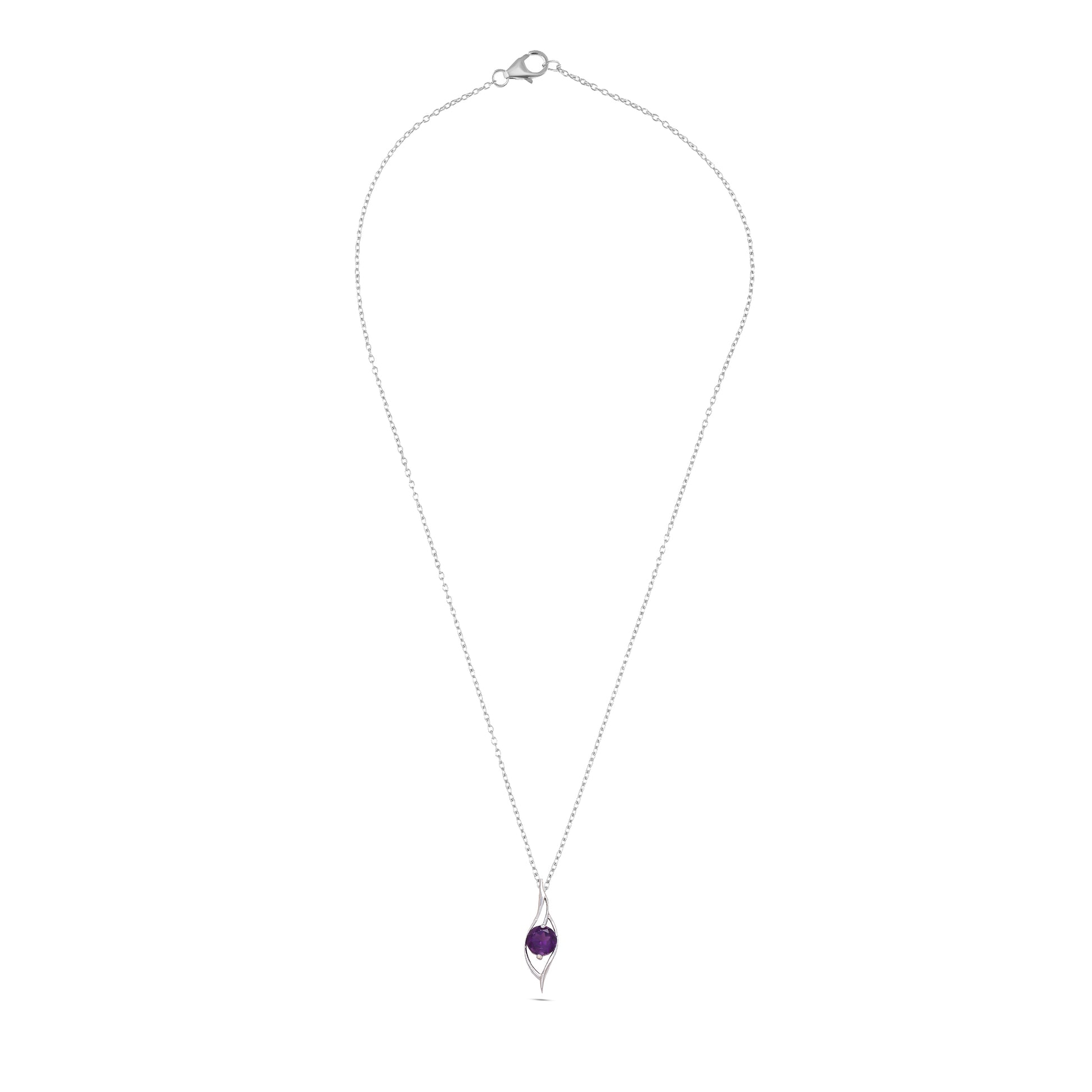Sleek and graceful, the Amethyst Whisper Flame Pendant is a stunning embodiment of minimal elegance and natural beauty. A vibrant round-cut amethyst rests delicately within a fluid flame-shaped silver frame, symbolizing creativity and calm. The open, airy design gives this piece a modern edge while allowing the rich purple hue of the gemstone to shine with captivating brilliance. Perfect for day-to-night wear, this pendant adds a touch of sophistication and meaning to any ensemble.